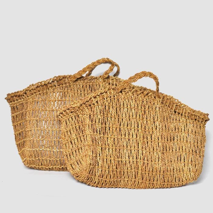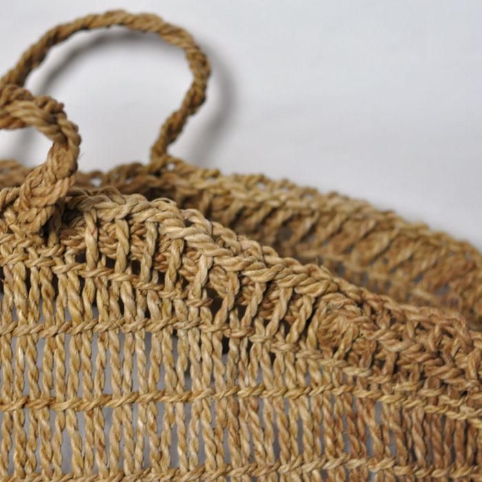 シナの木の繊維で縄をない、越後アンギン編みによる全く原始的な手仕事によって一つ一つ作られています。シナ布は水気に強く丈夫で、古代織物の一つとして受け継がれている日本の民芸細工です。今ではこの新潟県山北町の集落の他、日本の二、三の山里でほそぼそと織り継がれているにすぎません。エフスタイルのお二人は、今に残るシナ織について考え、集落に足を運び、古代織物のバッグの提案によって伝承されています。