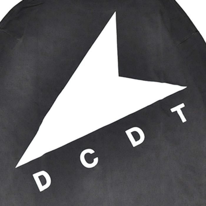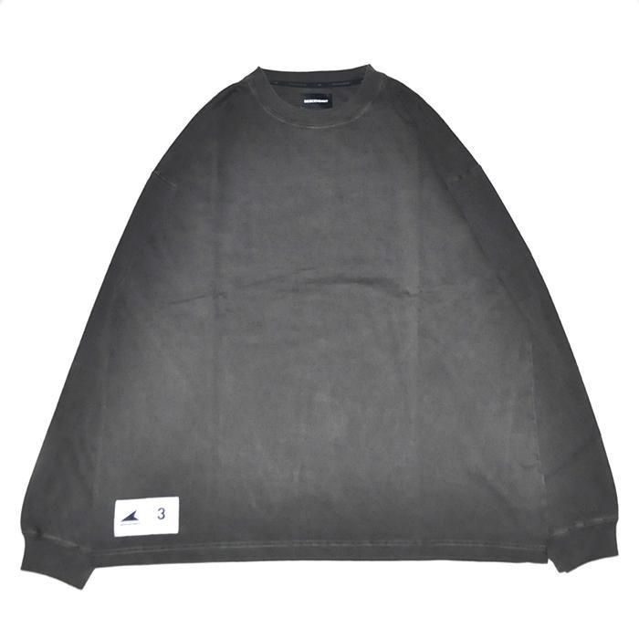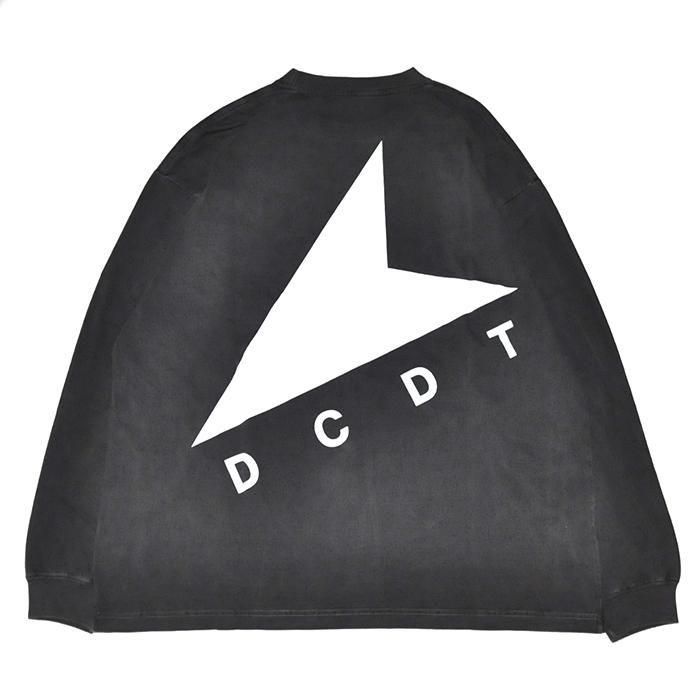 コットン天竺を使用し、背面に斜めのCETUSのグラフィックをプリント、ピグメントダイ加工によるブラック、ネイビーを2色展開したロングスリーブシャツ。襟ぐりの継ぎ目にはオリジナルテープのパイピング。右前裾にサイズを表示したCETUSの織りネーム付き。