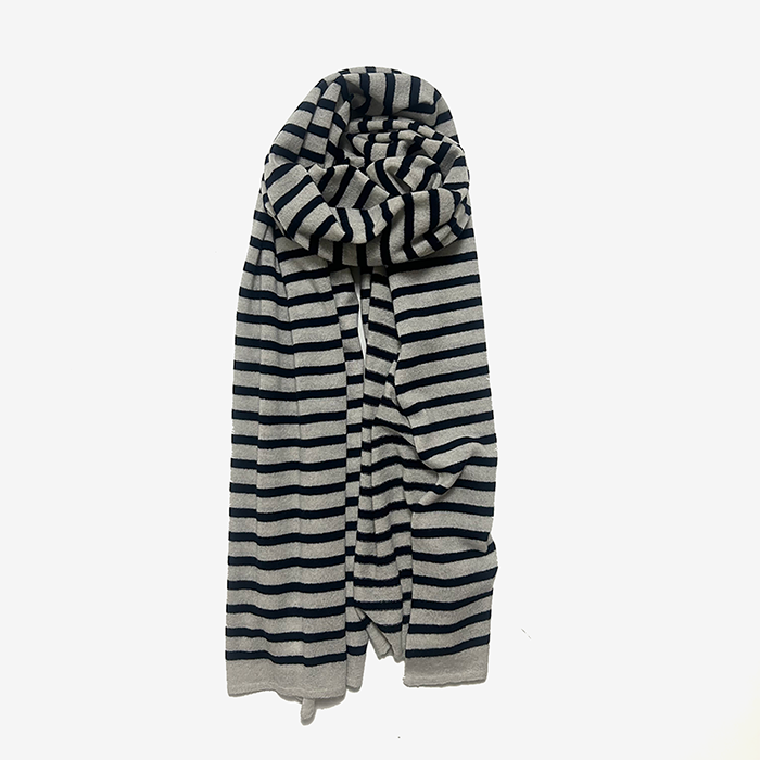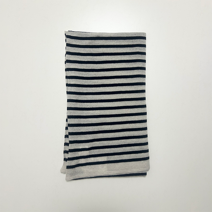 eleven 2nd | Cashmere Border Stole | White Smoke / Dk.navy