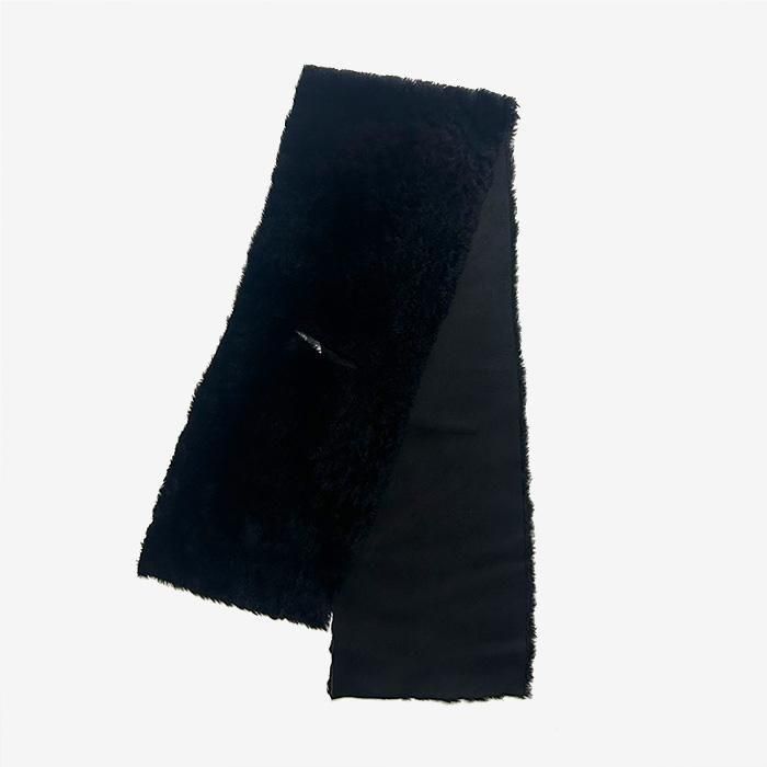スペイン産メリノシープスキンを使用したシアリングのスカーフ。温かさと耐久性を兼ね備えた、マーガレット・ハウエル冬の定番素材。 英国製で、切りっぱなしのエッジにより軽く仕上げ、柔らかな風合いを引き出したデザイン。