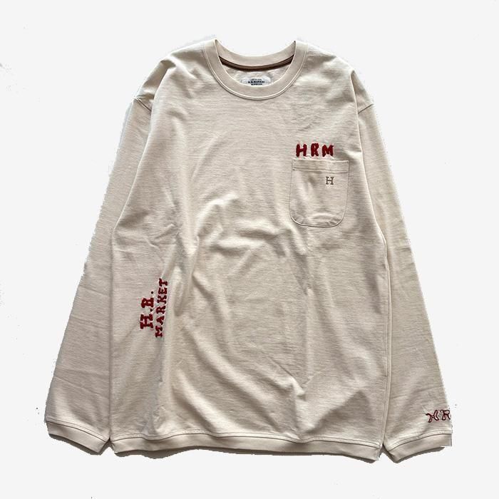 HOLLYWOOD RANCH MARKET | HRMハンドエンブロイダリー ナローリブポケットロングスリーブTシャツ | NATURAL