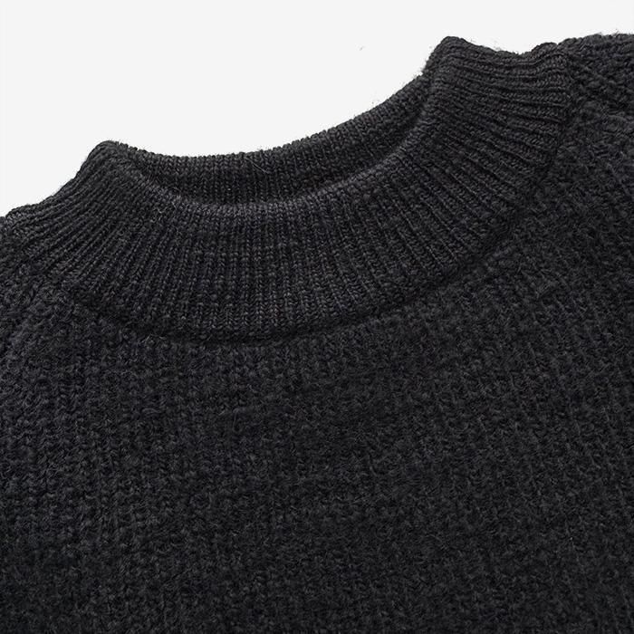 畦編み特有の立体的なボリュームを活かした、身幅にゆとりをもたせたシルエットです。インナーとしてはもちろん、アウターとして中に厚手のレイヤリングをしても窮屈さを感じさせず、秋冬の着こなしに柔軟に対応します。日常の道具としての機能性を意識しています。