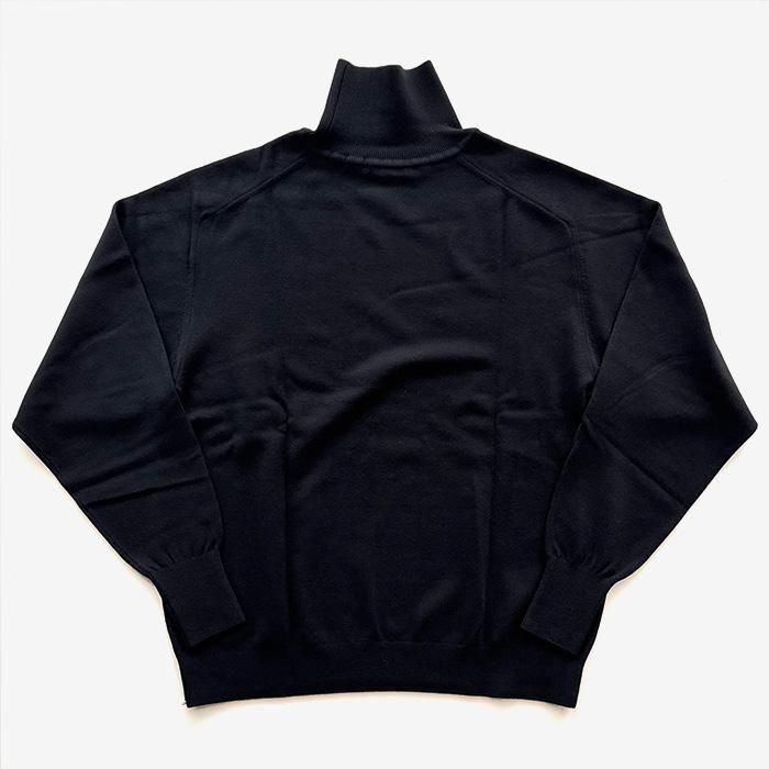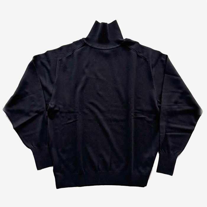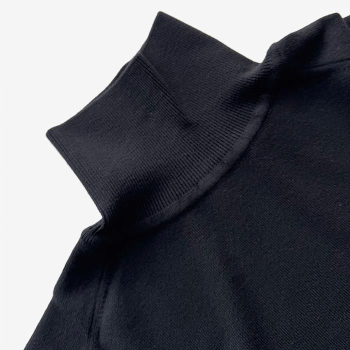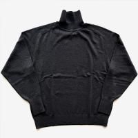 24番手の双糸を使用した非常にベーシックなタートルネックセーターです。各部の寸法を細やかに調整し、道具としての役割を十分に果たす定番的なアイテムとなっています。生地密度があり、原料もたっぷりと使用しているので、アウターとしてもインナーとしても多くのシーンで着用いただくことができます。