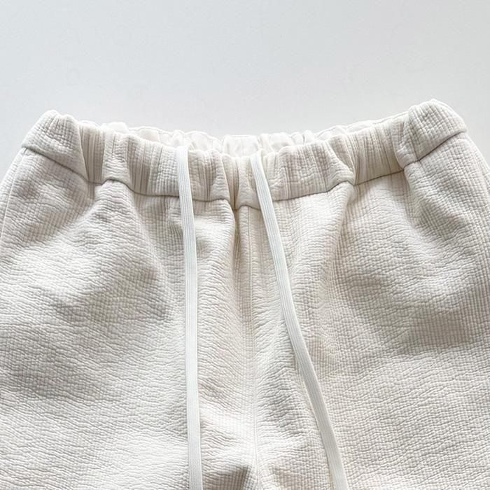 <2>ウエストcm(ゴムの伸縮がない状態) / 総丈cm / 股上cm / 股下cm / 裾幅cm