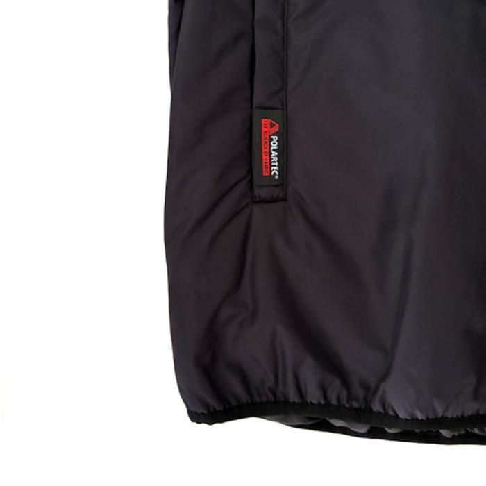 ナイロンタフタを使用した表地に、POLARTEC®製の中綿を封入したパフジャケット。左胸と襟の背面にHORIZONロゴのプリント、サイドのジップポケットには保温性に優れた機能素材POLARTEC®のネーム付き。左袖にPOLARTEC®ロゴのプリント、右袖にUNBEATEN by RAIN & WINDのプリント入り。