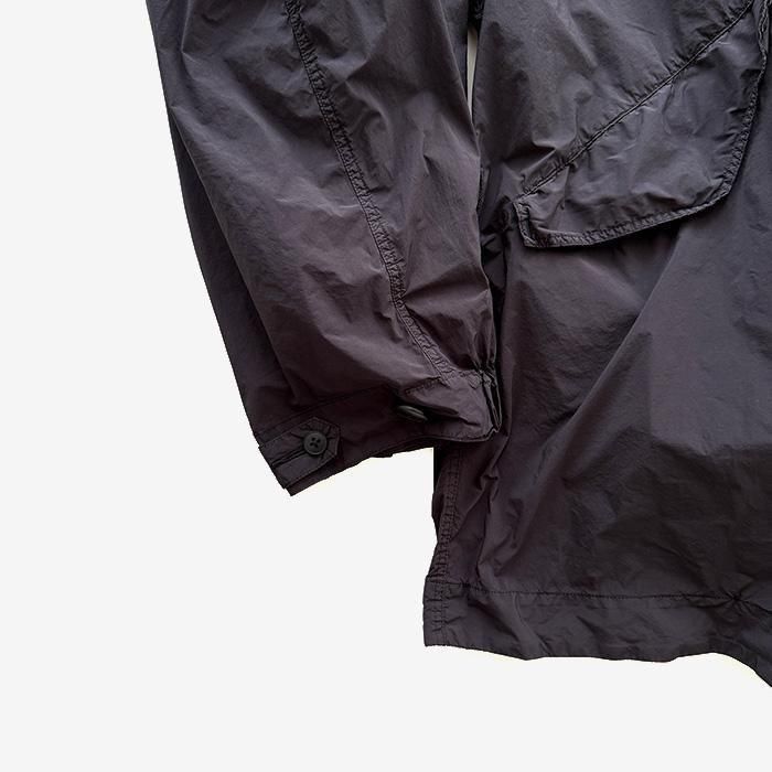 ナイロンとポリエステルの熱収縮率の違いを生かし、環境の変化により表情が変わっていく様を楽しむことのできる、天然繊維のような糸を使用し、石川県能美市にて高密度に織り込むことにより、独特の風合いを表現した素材です。製品染めで仕上げ、撥水加工を施しています。ライナーはしっかりと保温性が伴うので、真冬でも着用することができます。