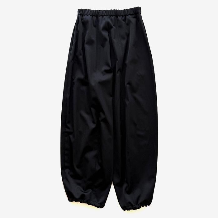 膝下からの極端なテーパードシルエットが特徴のバルーンパンツ。落ち感のある素材の為、着用しても膨らみ過ぎず、丁度良いカジュアル感になります。裾にドロストが入っている為、ミリタリーパンツのような雰囲気で着用することも出来ます。また、ウエストにもドロスト入りでサイズ調整可能です。