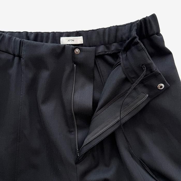 ATON | WOMEN | WOOL SATIN STRETCH | EASY PANTS | BLACK