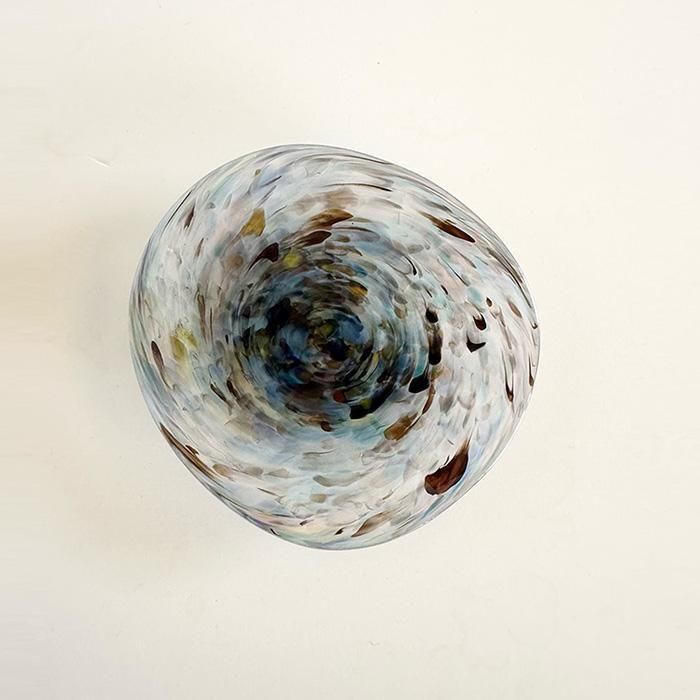 20歳から渡米し彫刻を学び、その後L.Aにてデヴィッド・スベンソンのワークショップに参加。トーテムポールの彫刻とネオン制作など多才ぶりを発 揮し帰国。東京ガラス工芸研究所でガラス制作を学び、独立後は個展・二人展など精力的に参加。現在では、使い手が少なくなってきている『吹きガラス』 の技法を用い、スウェーデンやイタリアの技術を取り入れた作品を作っておられます。作品はどれもシンプルで、モノの形や素材を大切しているお二人の作風が表現されています。