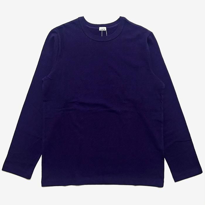 シンプルでベーシックな丸首のロングスリーブのTシャツでございます。着丈、身幅など絶妙なサイズ感で仕立てられています。凹凸のある糸を使用している為、表情のある生地感です。肌触りもとても良く、心地の良い着心地です。