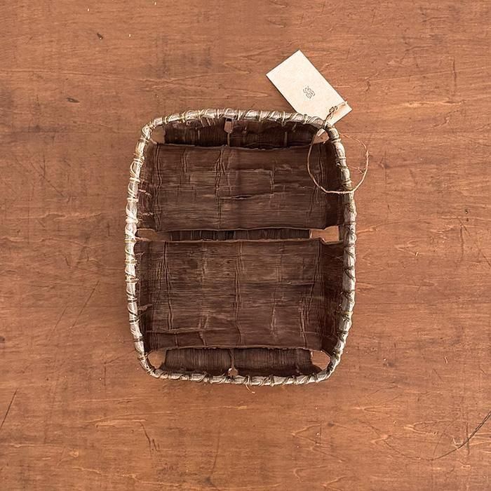 鬼胡桃の樹皮で丁寧に作られた、茶器籠です。長方形です。