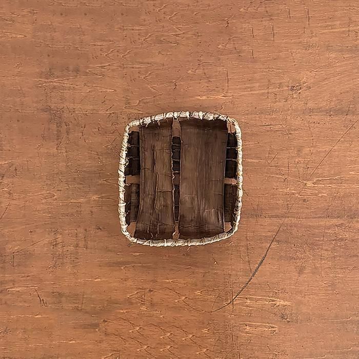 鬼胡桃の樹皮で丁寧に作られた、茶器籠です。正方形です。