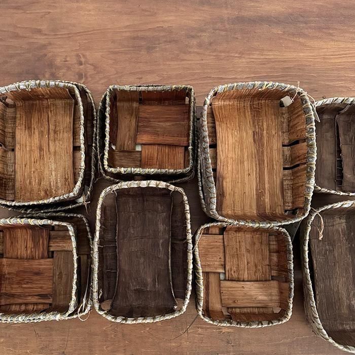 長野県の森の中で暮らし、木と語らいながら素材を編み、組み、かたちにする編組品作家。偶然のご縁から森に移り住み、木こりとして木と向き合う日々を送ってきました。 木に登り、樹皮を採取し、自然の循環の中で得た素材を用い、「森の息づかいを編み込む」ように作品を生み出しています。㓛刀さんの作品は、自然素材がもつ力強さとやわらかさ、そして手のぬくもりを大切にした編組品。一本一本の繊維や樹皮に触れながら、“生きることとつくること”が重なり合う瞬間を形にしています。