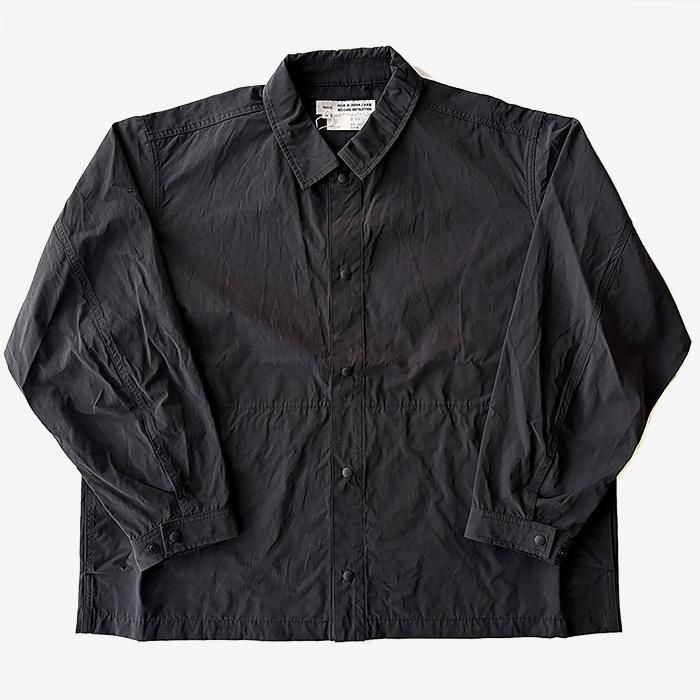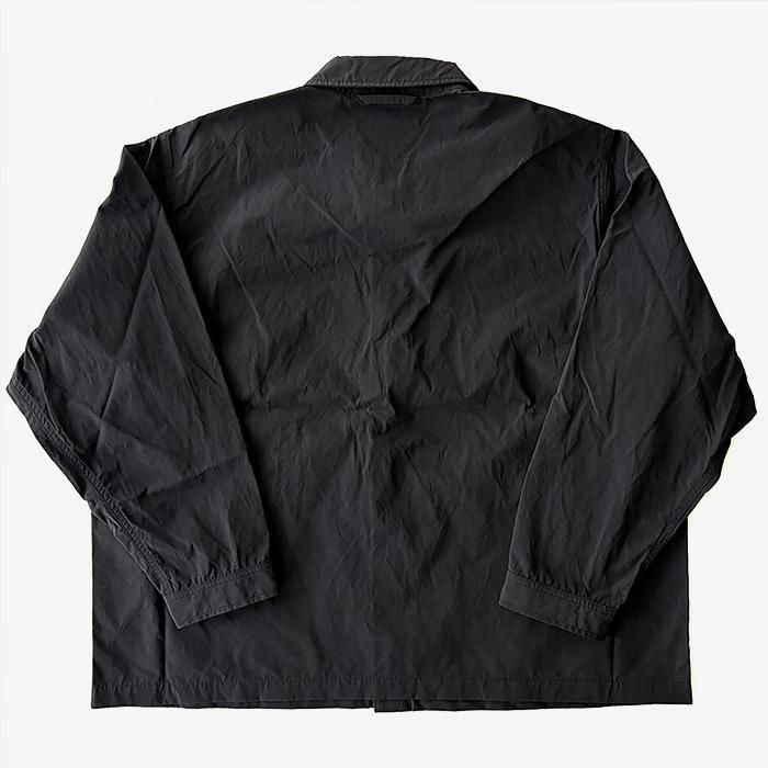 軽くてバリッとハリのある生地で作った、防風性の高いジャケットです。練習や試合のときに、ベンチでサッと羽織る、風除け用のスポーツジャケットをモチーフにして作りました。 細番手のコットンとナイロンを高密度に織り上げたハリのある生地です。軽い生地ですが、密度が高く、風をしっかりと防いでくれます。 中に着込んでもストレスなく過ごせるよう、ゆったりとゆとりのある身幅に、すっきりとした短めの丈。ウールなど保温性の高い服とレイヤリングすることで、軽くてあたたかい装いになります。 外側にはスラッシュポケット、内側には身の回りの小物を入れることのできる、ボタン付きのポケットを備えました。気楽に、身軽に過ごしたい方のためのジャケットです。