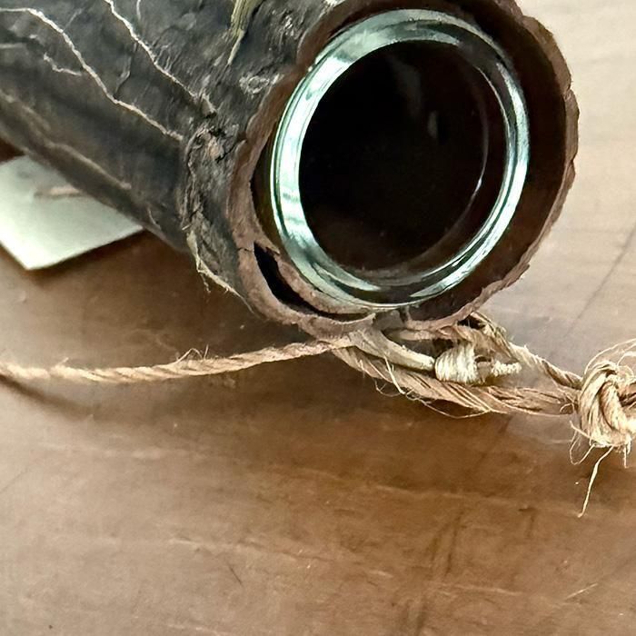 ウリハダカエデの樹皮で丁寧に作られた花器です。壁に掛けてお使いいただけます。中にはガラスが入っていますので、生花もドライフラワーもどちらでも対応可能です。