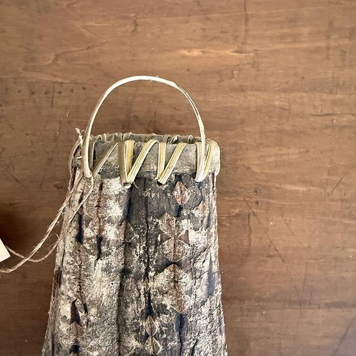 ウリハダカエデの樹皮で丁寧に作られた小物入れです。壁に掛けてお使いいただけます。中に瓶を入れれば花器としてもお使いいただけます。