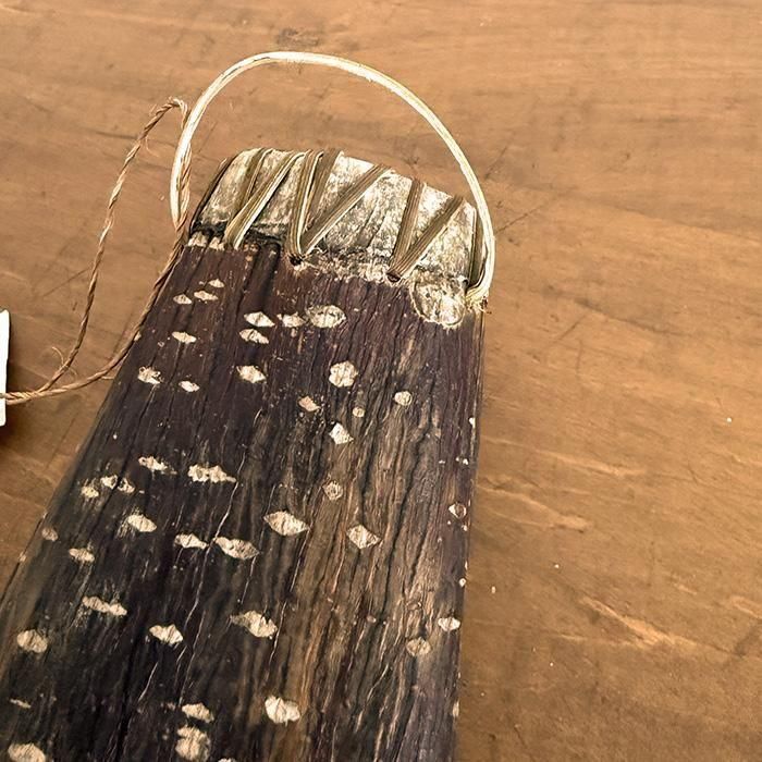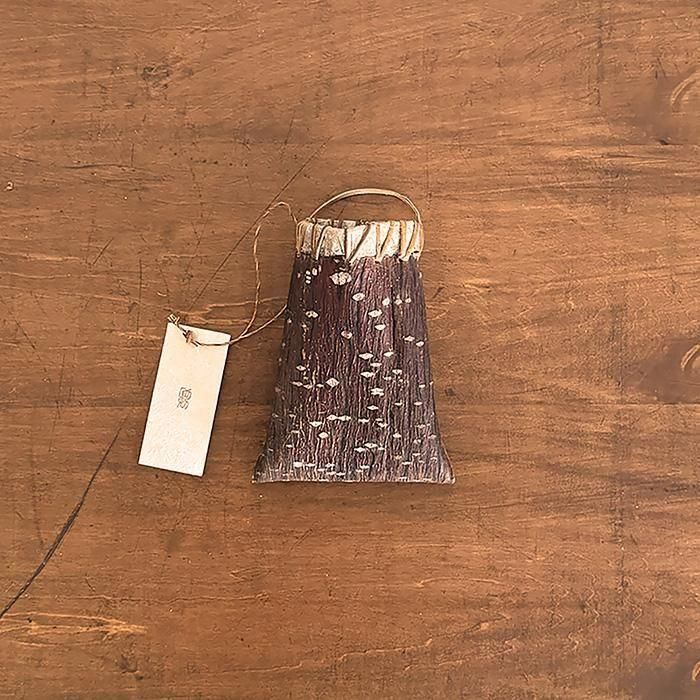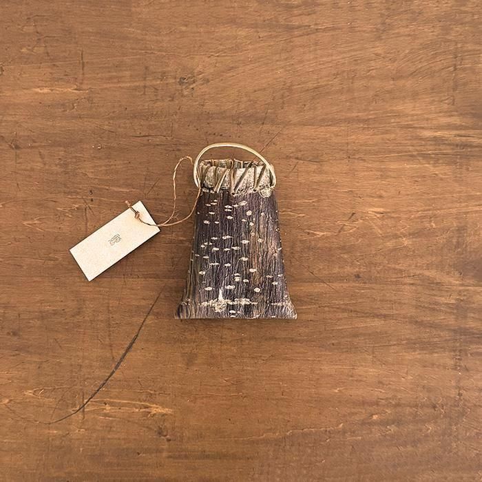 ウリハダカエデの樹皮で丁寧に作られた小物入れです。壁に掛けてお使いいただけます。中に瓶を入れれば花器としてもお使いいただけます。