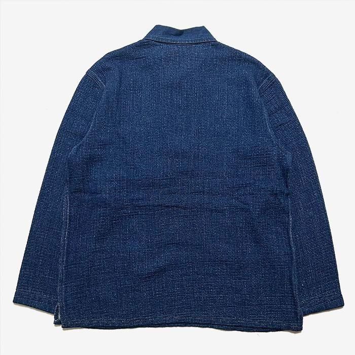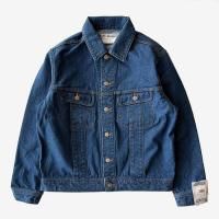 襟、前立て部分はオリジナルのライトデニムで切り替えています。内ポケットのステッチも雰囲気良く。袖口裏は、別生地で切り替えているので、着こんで擦れてしまっても安心な仕様に。フロントのポケットはオリジナルのライトデニムを使用しています。サイドには、ブランドのピスネームをつけています。使い勝手の良い内ポケットが付いています。ポケット口部分の裏には、着こんでも生地が傷みにくいように、補強布を別生地でつけています。