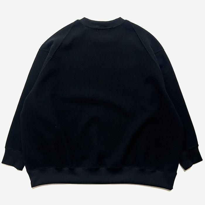 ラグランスリーブの切り替え線をあえてずらすことで、前面から見るとセットインスリーブ、背面から見るとラグランスリーブに見えるような、表裏の表情を持たせたクルーネック。 ワンマイルといわずテンマイル先までの範囲をカバーしてくれます。