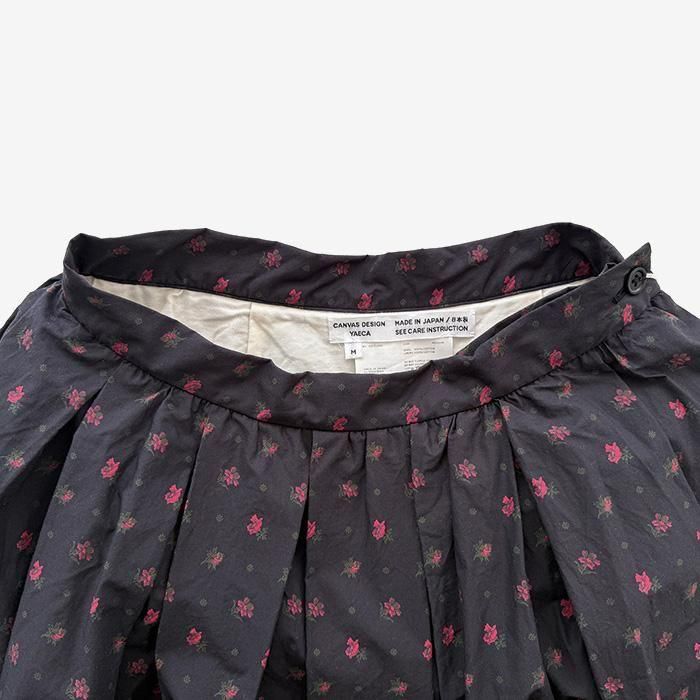 生地をたっぷりと使用し贅沢に施されたタックデザイン、ふんわりとした程よいボリューム感が特徴のギャザースカート。YAECAオリジナルのコットン生地に英国リバティ社の小ぶりな花のモチーフが描かれた生地を使用しています。コットンの裏地が付いているので透け感も気にならず安心感があります。腰の位置にはタックに沿うようにハンドポケットを配置。サイドに配したボタンとファスナーで着脱も容易に行えます。