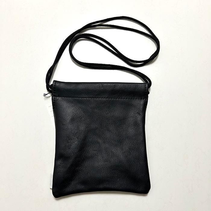 ゴート素材で巾着型のポシェット。紐の付け方を輪にしているため物の出し入れがしやすく、さらには斜め掛けで使うことも出来ます。携帯、お財布、鍵など必要最低限のものを入れて持ち歩く時に選びたいサイズです。