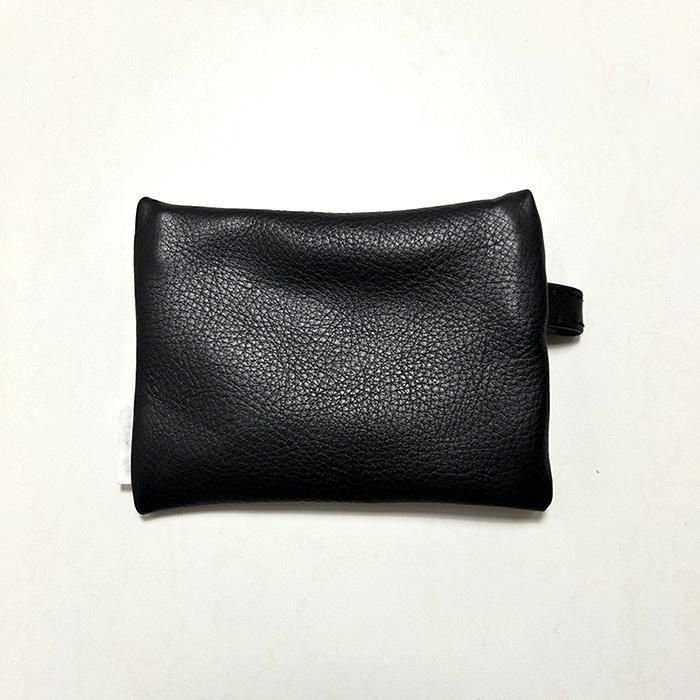 シボが入ったシュリンクレザーで作ったマチのないフラットポーチ。丈夫でキズが目立ちにくいのが特長です。TASUKI STRAPに取り付けて使うこともできます。カードや小銭、イヤホンなどの収納にも使いやすいサイズ。