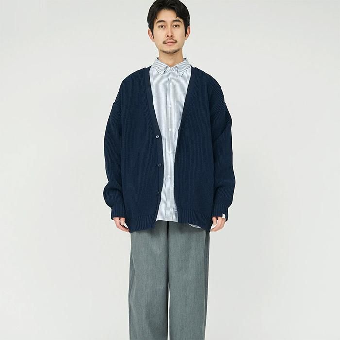手に取ると驚くほど軽いニットカーディガン。ソフトでふっくらした「デルタ糸」と軽やかに伸びて身体に馴染む「ソロテックス糸」を複合させたテックニット。シワになりにくく型崩れにも強い、通気性と速乾性に優れた春先と秋口に活躍する1枚。