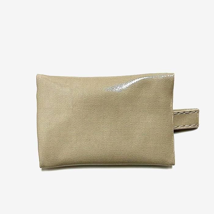 マチのないフラットポーチのミニサイズ。 リップなどの小物、カードや小銭を入れても。 濡れても汚れてもサッと拭き取れるので、アウトドアでも活躍します。