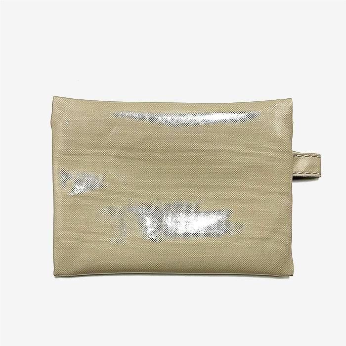 マチのないフラットポーチです。リップなどの小物、カードや小銭などを入れてお財布としても。 TASUKI STRAP LONGに取り付けることができます。キャンバス生地の表面にPVCコーティングを施してありますので、防水性と耐久性がございます。濡れにくく汚れにくいので非常に便利です。