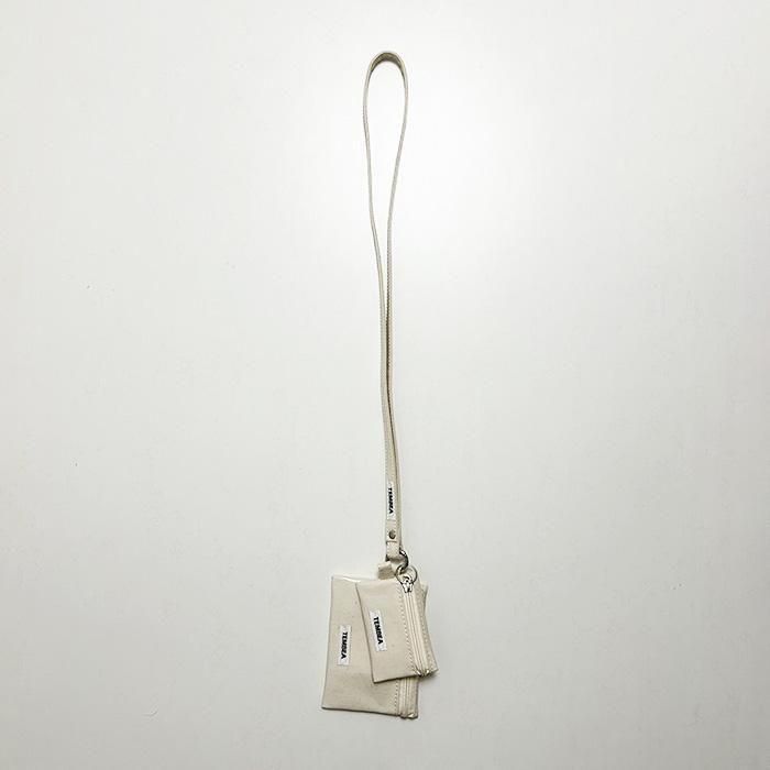たすき掛けが出来るストラップでございます。FLAT POUCHやKEY WALLET、携帯などを取り付けることができます。キャンバス生地の表面にPVCコーティングを施してありますので、防水性と耐久性がございます。濡れにくく汚れにくいので非常に便利です。