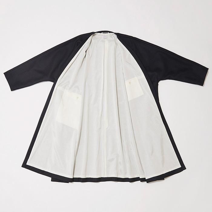 とても滑らかで光沢のある上品なオリジナルメルトン生地を用いたコートです。肌触りの良さと美しいドレープが特徴です。生地の上質さとミニマルなデザインが際立つ、上品で使い勝手の良い羽織りコートです。