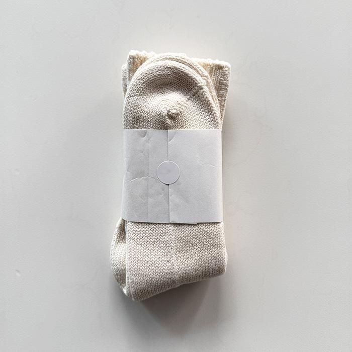 やわらかい肌触りのコットン糸を使ったリブ編みソックスです。通常はウールに使う紡績機を使ってコットンを紡ぐことで、空気を含んだ柔らかな糸に仕上がっています。 やわらかく、気持ちよく伸びるソックスです。