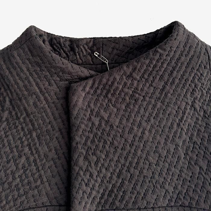 JK-64 | 中わた刺し子織ジャケット | 黒茶
